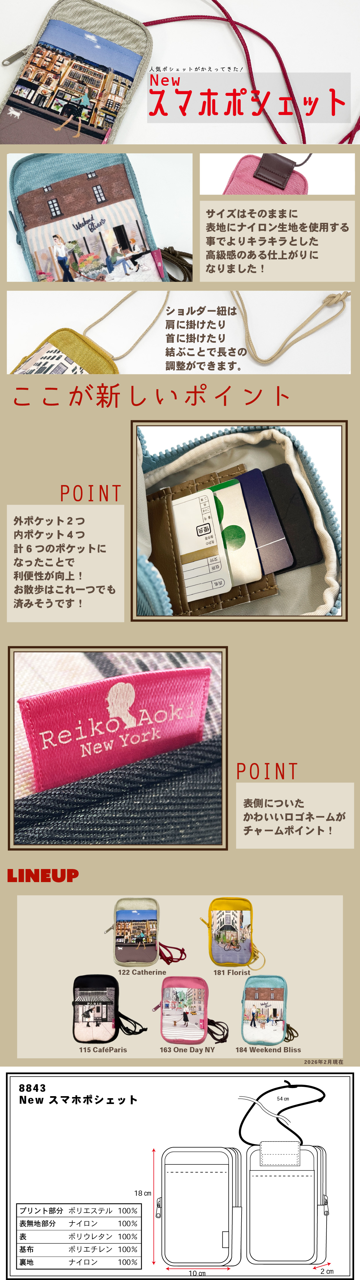 スマホポシェットが新しくなって帰ってきました! スマホはもちろん外ポケットは2つに増え内ポケットには4枚カードを収納できてとっても便利! 今回は昔の人気イラスト『Catherine』が新たにLINEUP!