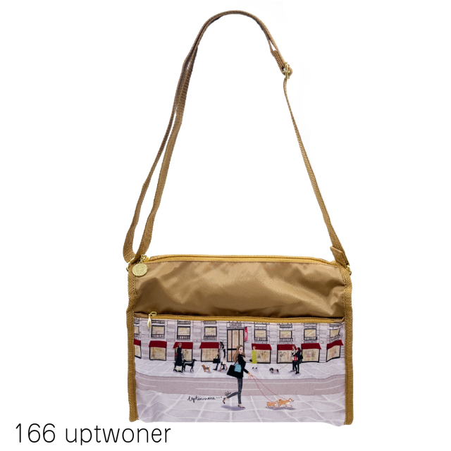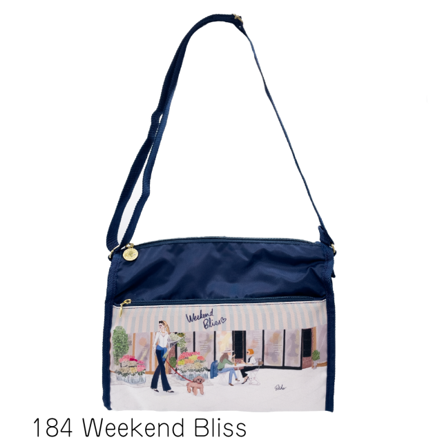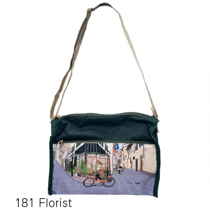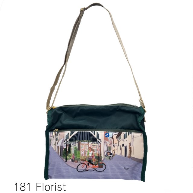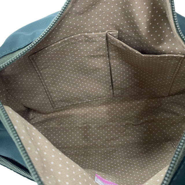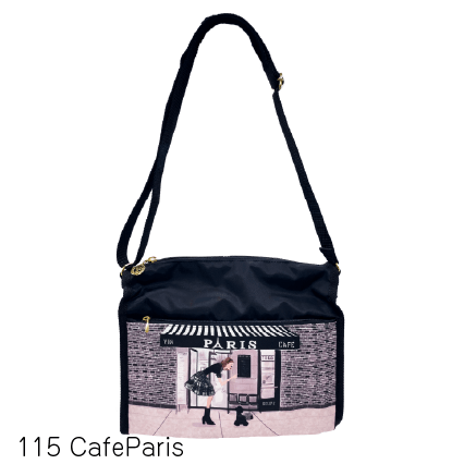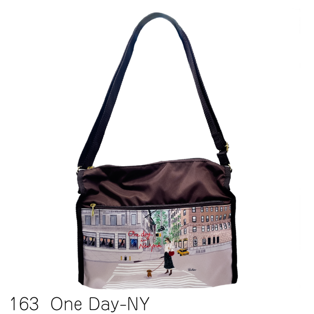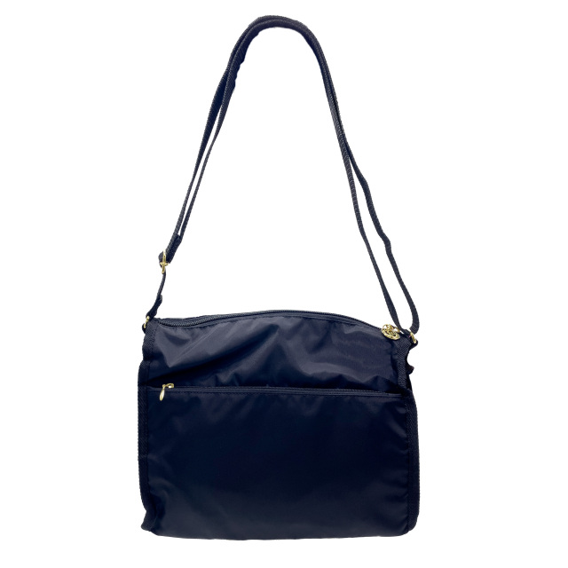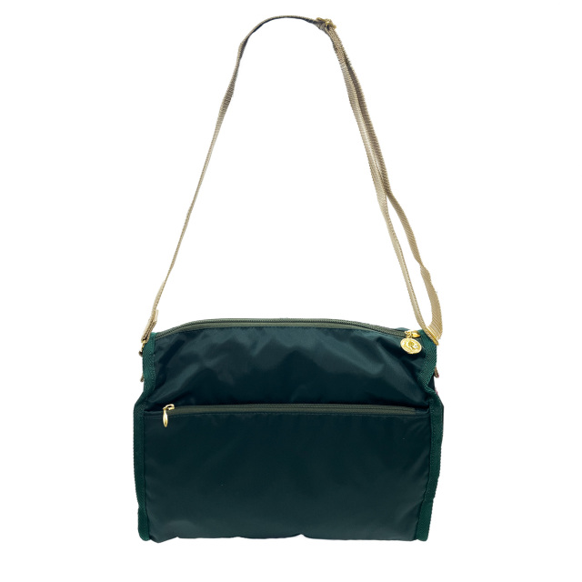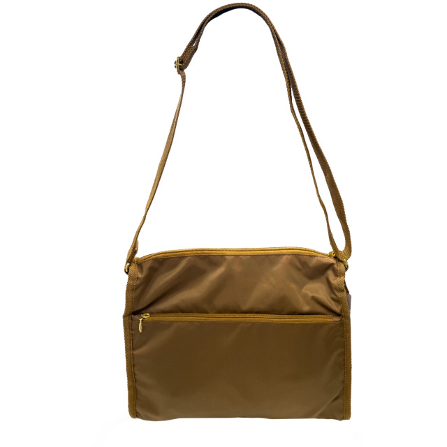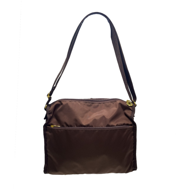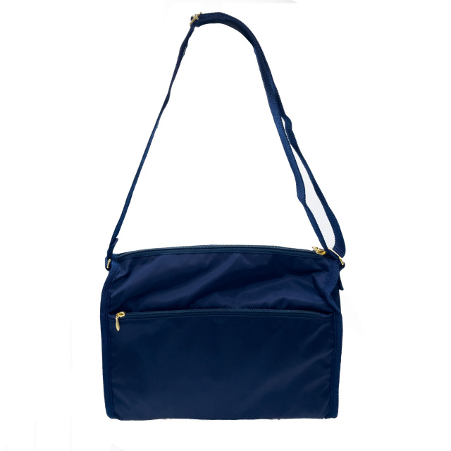 全面と裏面に大きなジップポケットが付いたショルダーバッグ。