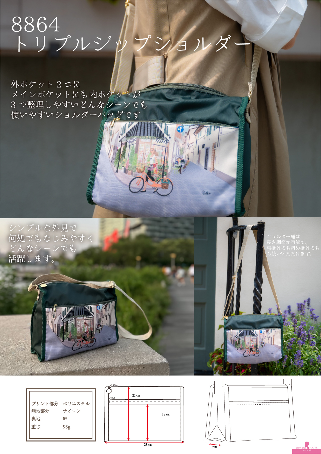 ショルダー紐は長さ調整が可能なので肩掛け、斜め掛けもできます!